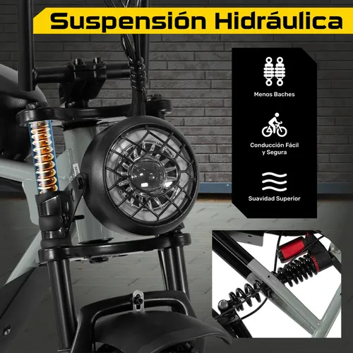 Suspensión Total: Suspensión hidráulica delantera y trasera para un control total en cualquier terreno.