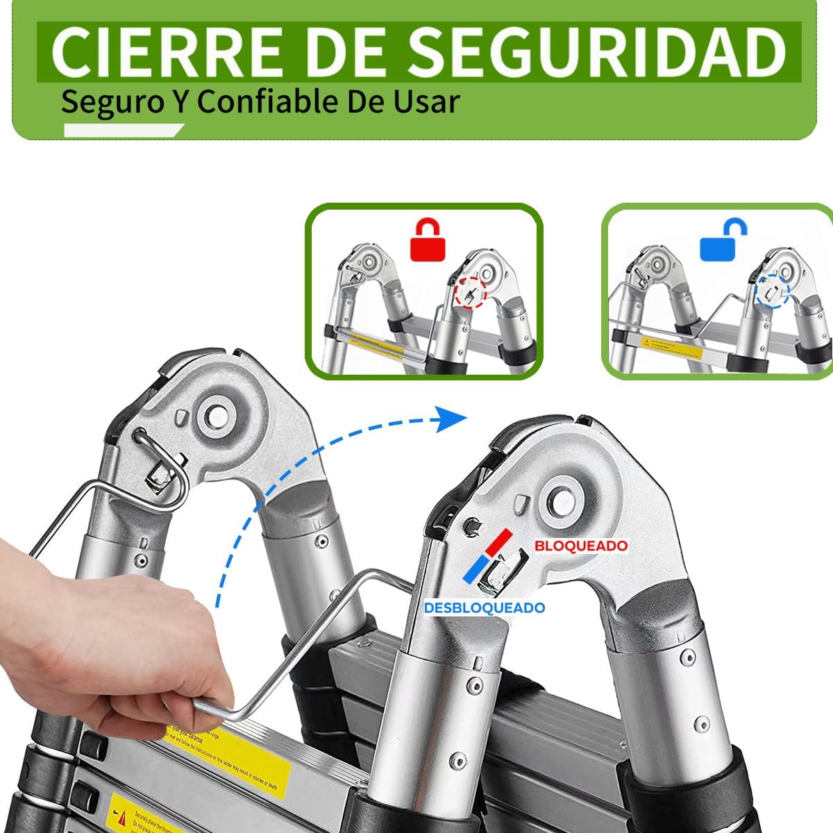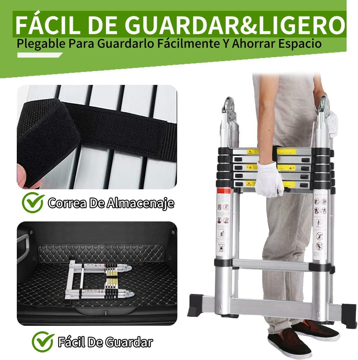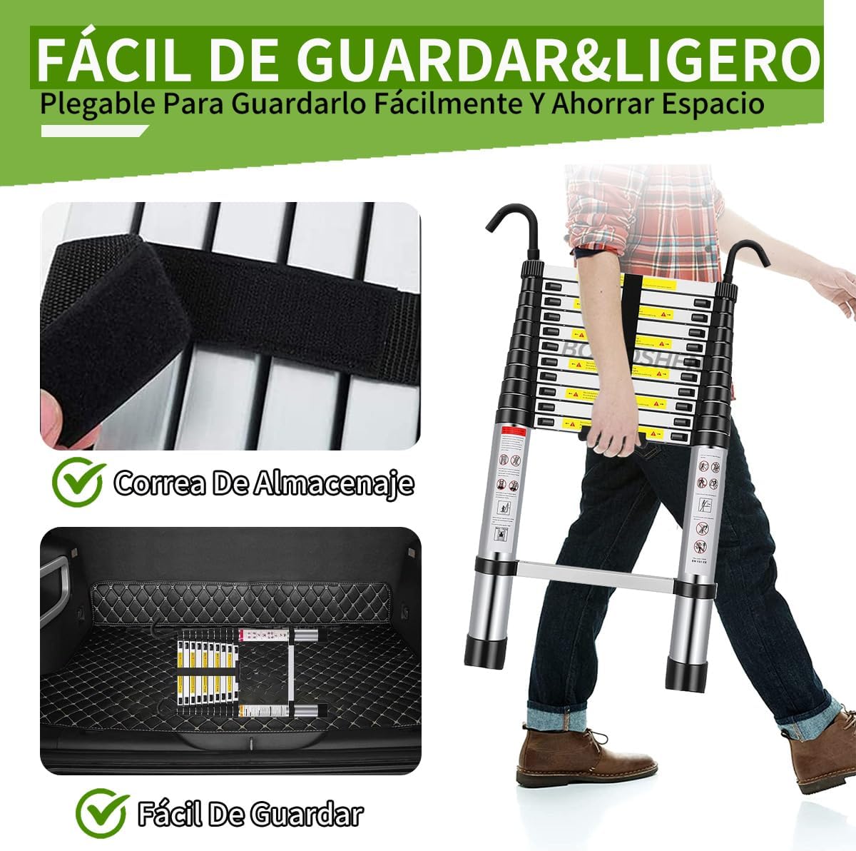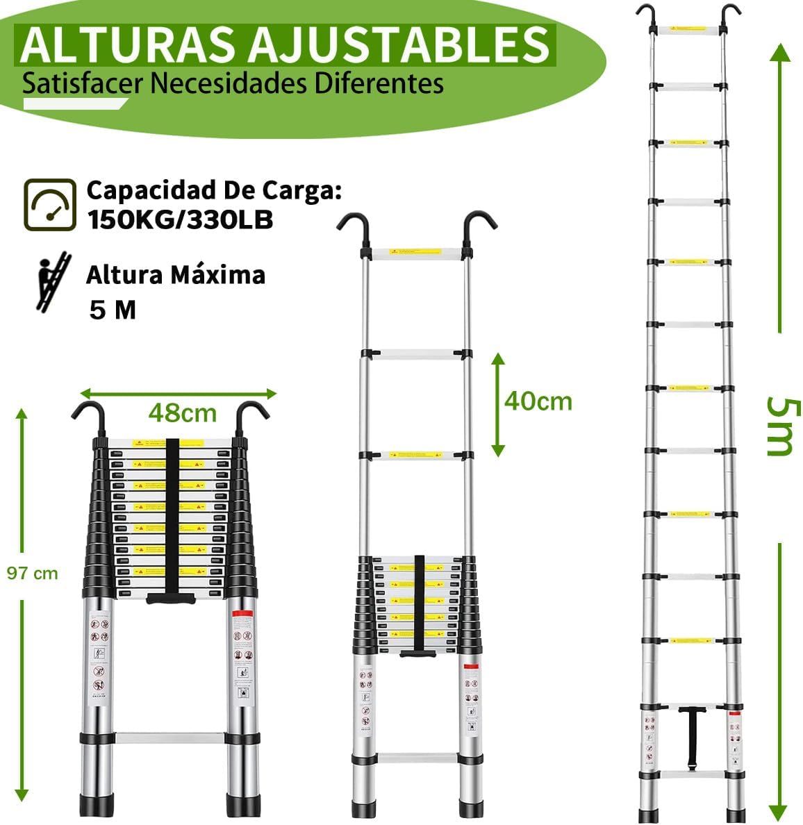 - 【Material De Aluminio Prémium】Utiliza material de aluminio de aviación prémium, una escalera de marco es sin costuras en una sola pieza, y es más gruesa y duradera que la misma escalera de alcance. Escalera con capacidad de carga de 330 libras, esta escalera telescópica puede soportar trabajos pesados sin comprometer la seguridad. La superficie telescópica de la escalera no se oxida fácilmente y es resistente a la corrosión.