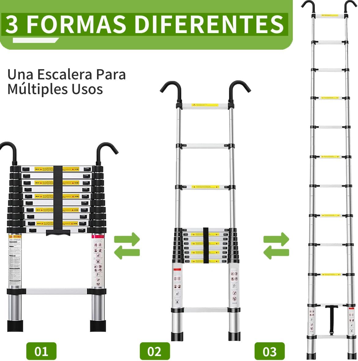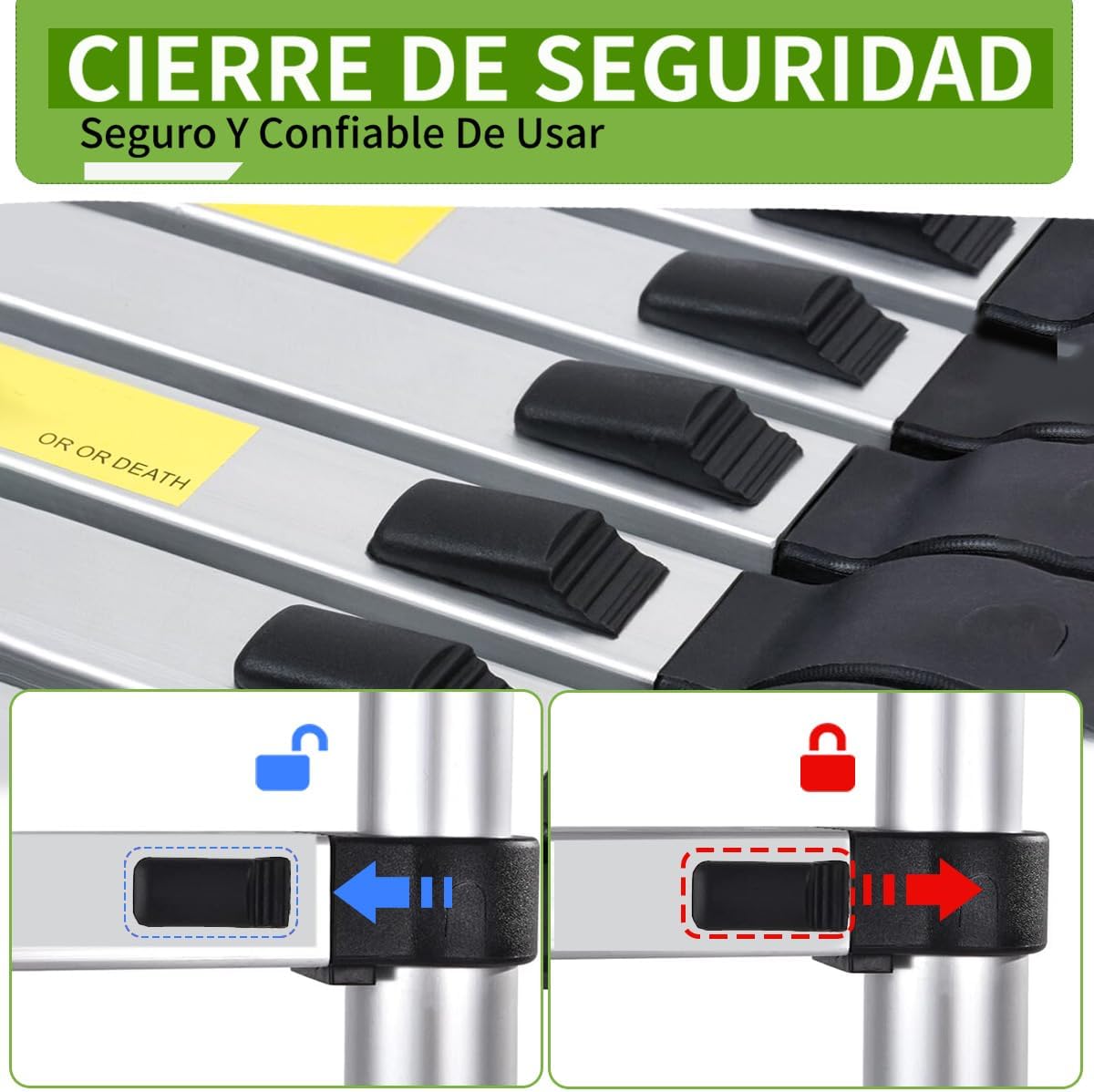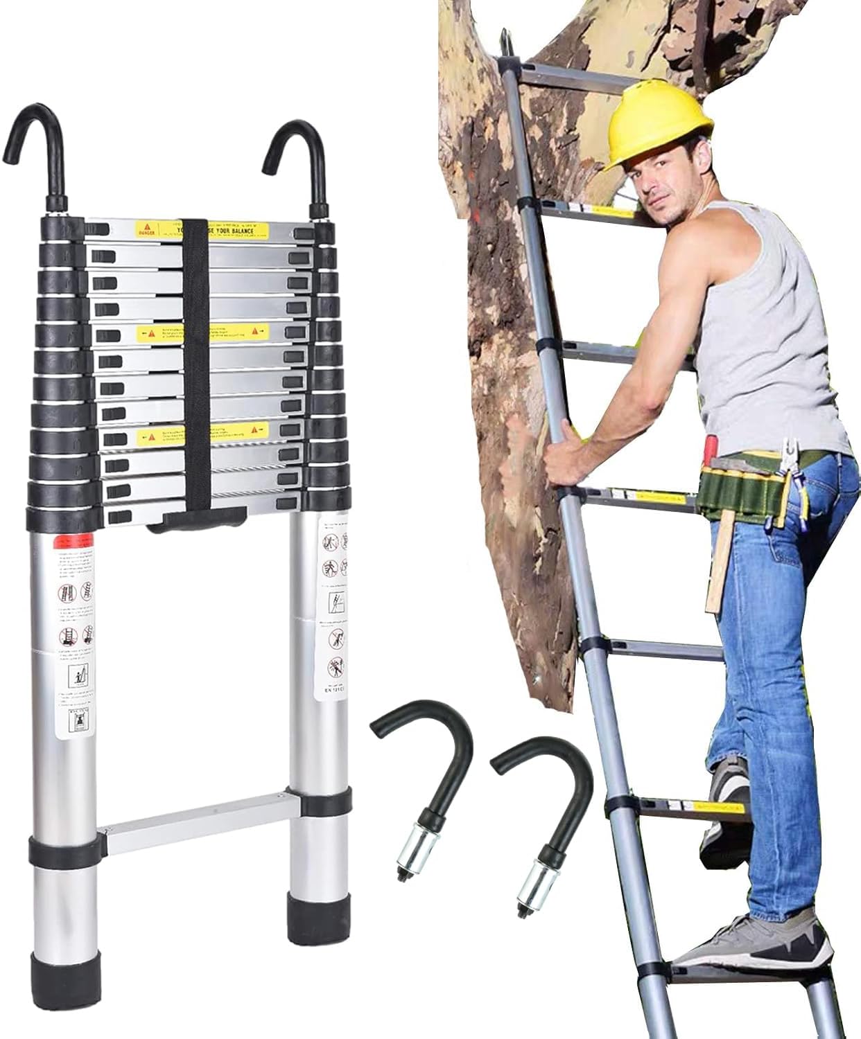 - 【Material De Aluminio Prémium】Utiliza material de aluminio de aviación prémium, una escalera de marco es sin costuras en una sola pieza, y es más gruesa y duradera que la misma escalera de alcance. Escalera con capacidad de carga de 330 libras, esta escalera telescópica puede soportar trabajos pesados sin comprometer la seguridad. La superficie telescópica de la escalera no se oxida fácilmente y es resistente a la corrosión.