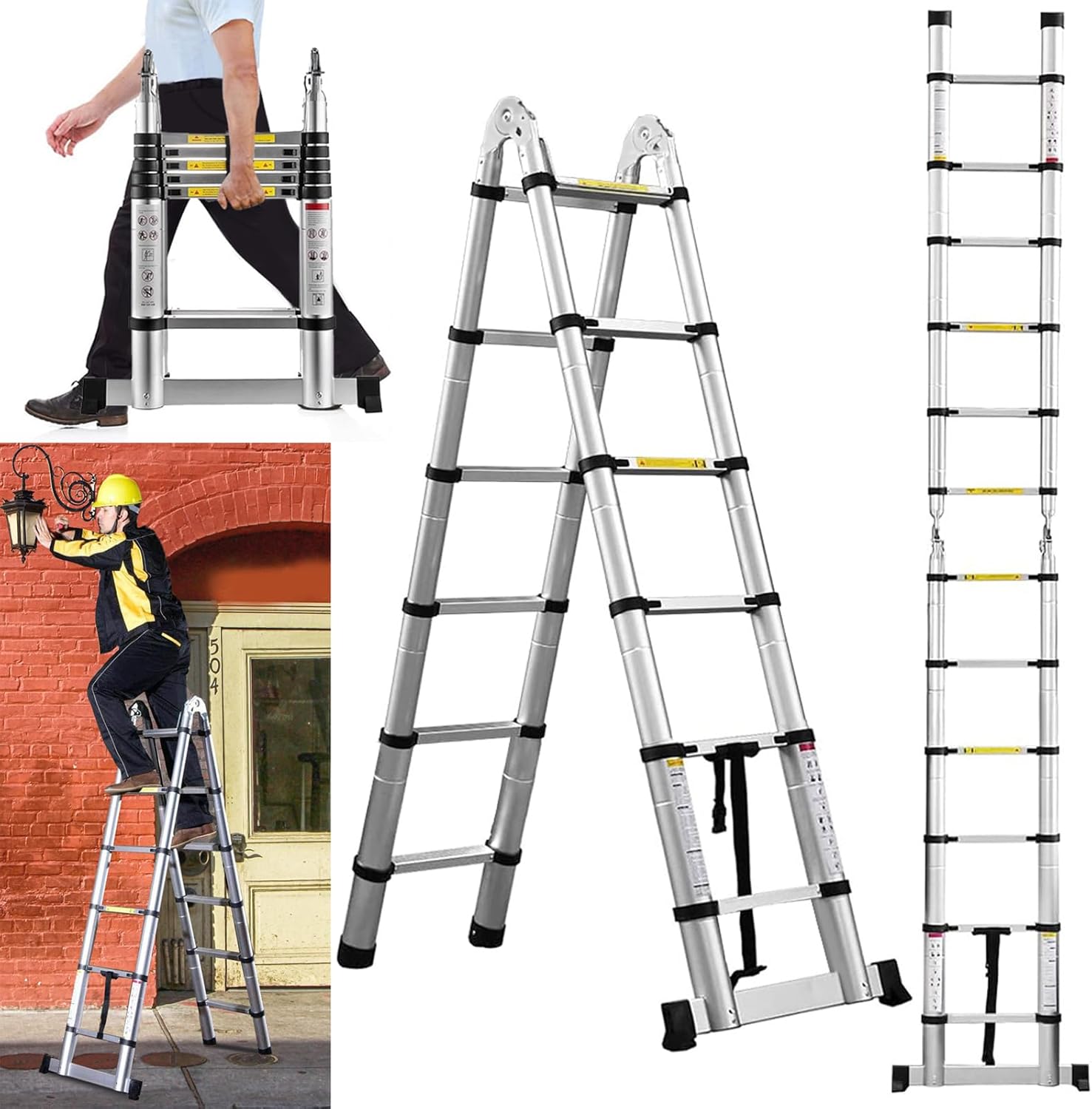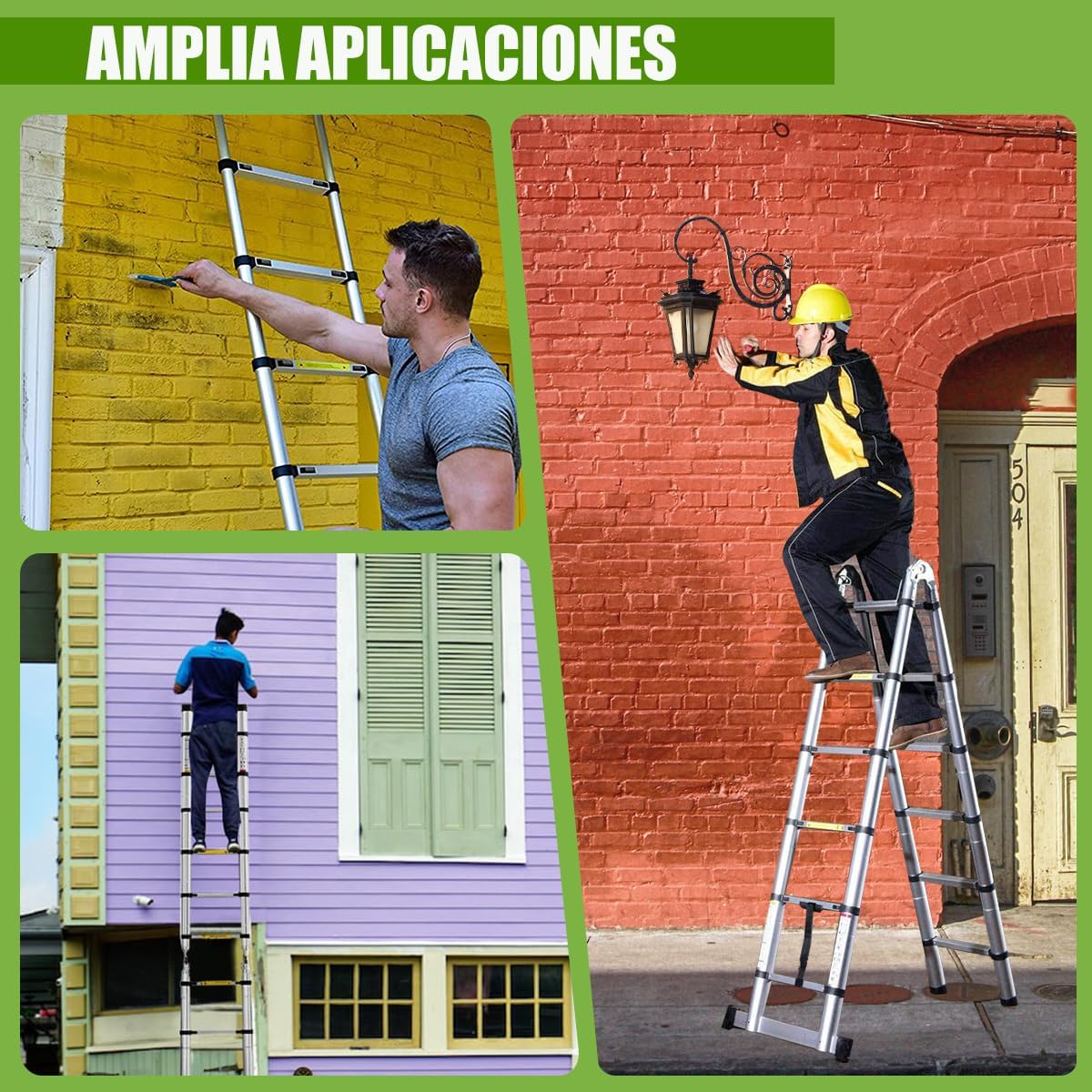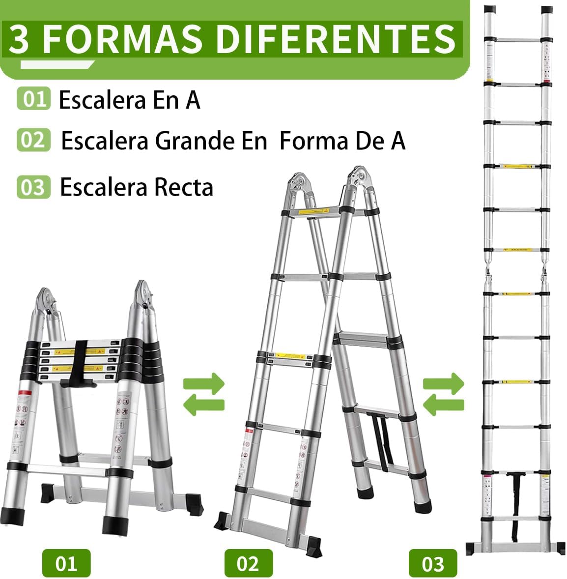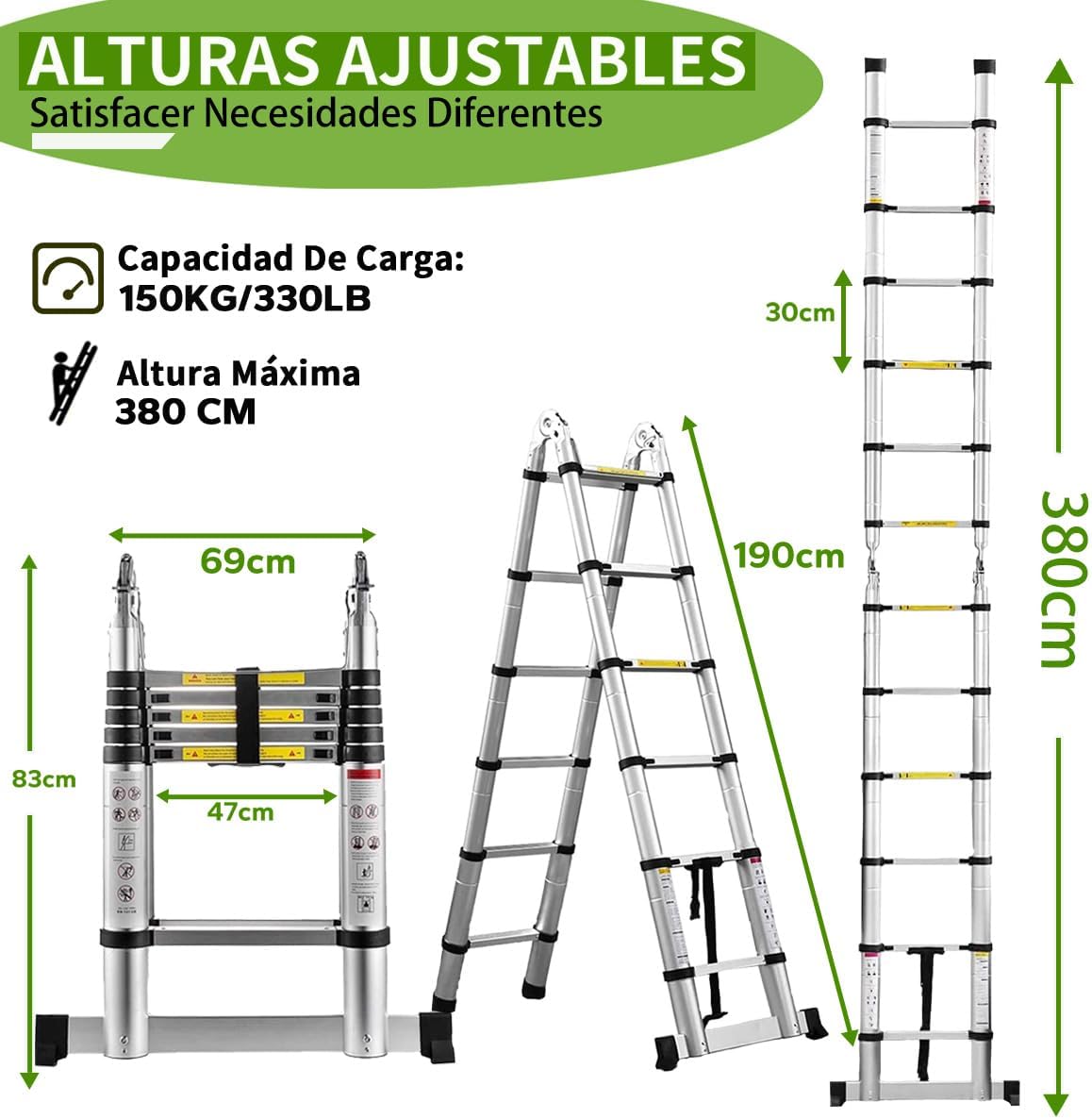 - 【Material De Aluminio Prémium】Utiliza material de aluminio de aviación prémium, una escalera de marco es sin costuras en una sola pieza, y es más gruesa y duradera que la misma escalera de alcance. Escalera con capacidad de carga de 330 libras, esta escalera telescópica puede soportar trabajos pesados sin comprometer la seguridad. La superficie telescópica de la escalera no se oxida fácilmente y es resistente a la corrosión.