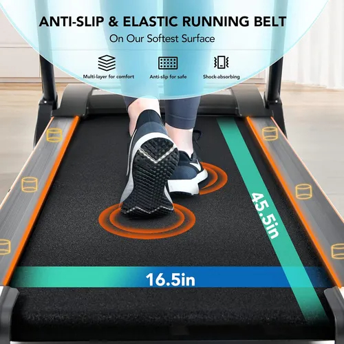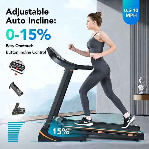 Experiencia de entrenamiento mejorada: las cintas de correr para el hogar logran un entrenamiento personalizado con velocidad ajustable que varía de 0.5 a 10 mph, y niveles de inclinación personalizables del 0% al 15% (automáticamente a través de botones de control). El espacioso cinturón de carrera de 16.5 x 45.5 ofrece un amplio espacio para los cómodos zancadas. Con 12 programas preestablecidos, los usuarios pueden variar fácilmente sus entrenamientos para obtener resultados óptimos.; Estabilidad de amortiguación superior: disfrute de una experiencia de entrenamiento amigable con las articulaciones gracias a las innovadoras sets innovadoras de cemts patentados amortiguadores patentados. Las cintas de correr de la construcción robusta y los materiales resistentes aseguran la estabilidad, incluso durante los entrenamientos intensos. El diseño plegable con un sistema de suave permite un fácil almacenamiento y ahorro de espacio. La cinta de correr está diseñada para acomodar a los usuarios de la mayoría de los tipos de cuerpo con su capacidad de peso de 280 libras.; Controles intuitivos Operación fácil: la cinta de correr plegable presenta una interfaz fácil de usar con botones de acceso directo intuitivos para inicio, parada, modos de cuenta regresiva, selección de programas, ajuste de inclinación y control de velocidad, etc. También ofrece teclas rápidas de un toque para ajustes de velocidad inmediata (2/4/6/8 mph) e inclinación (3/6), racionalizando sus sesiones de entrenamiento. Los ajustes rápidos de velocidad e inclinación en el pasamanos también proporcionan una gran comodidad para los usuarios.; Seguimiento preciso claro: manténgase conectado y motivado durante los entrenamientos con Bluetooth y la compatibilidad de la aplicación. La cinta de correr portátil puede monitorear su frecuencia cardíaca con los sensores de pulso incorporados y rastrear métricas de entrenamiento esenciales que incluyen velocidad, inclinación, tiempo, distancia, calorías quemadas y la frecuencia cardíaca que se muestran simultáneamente en la pantalla grande LCD claramente completa. Manténgase motivado e informado durante todo su entrenamiento con las cintas de cinta de correr capacidades de seguimiento avanzado.; Soporte de la presentación confiable que admite una experiencia de funcionamiento cómoda: la combinación de elasticidad y suavidad hace que el cinturón de carrera de alta costura sea una opción ideal para los usuarios que buscan una experiencia de ejercicio cómoda y de bajo impacto. Con el 95% del ensamblaje completado al parecer, la cinta de correr de la inclinación para el hogar requiere un esfuerzo mínimo para establecerse. Además, el servicio al cliente rápido y confiable asegura que cualquier inquietud o consultas posteriores a la compra se aborden rápidamente. Todos nuestros productos estan en inglés SKU 7122342809