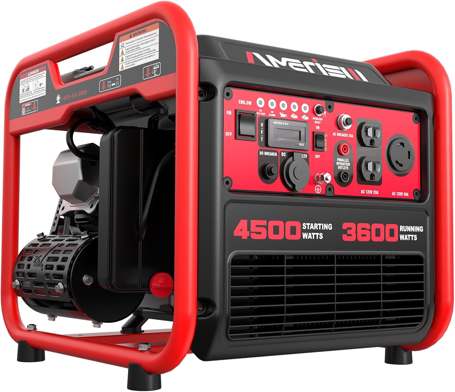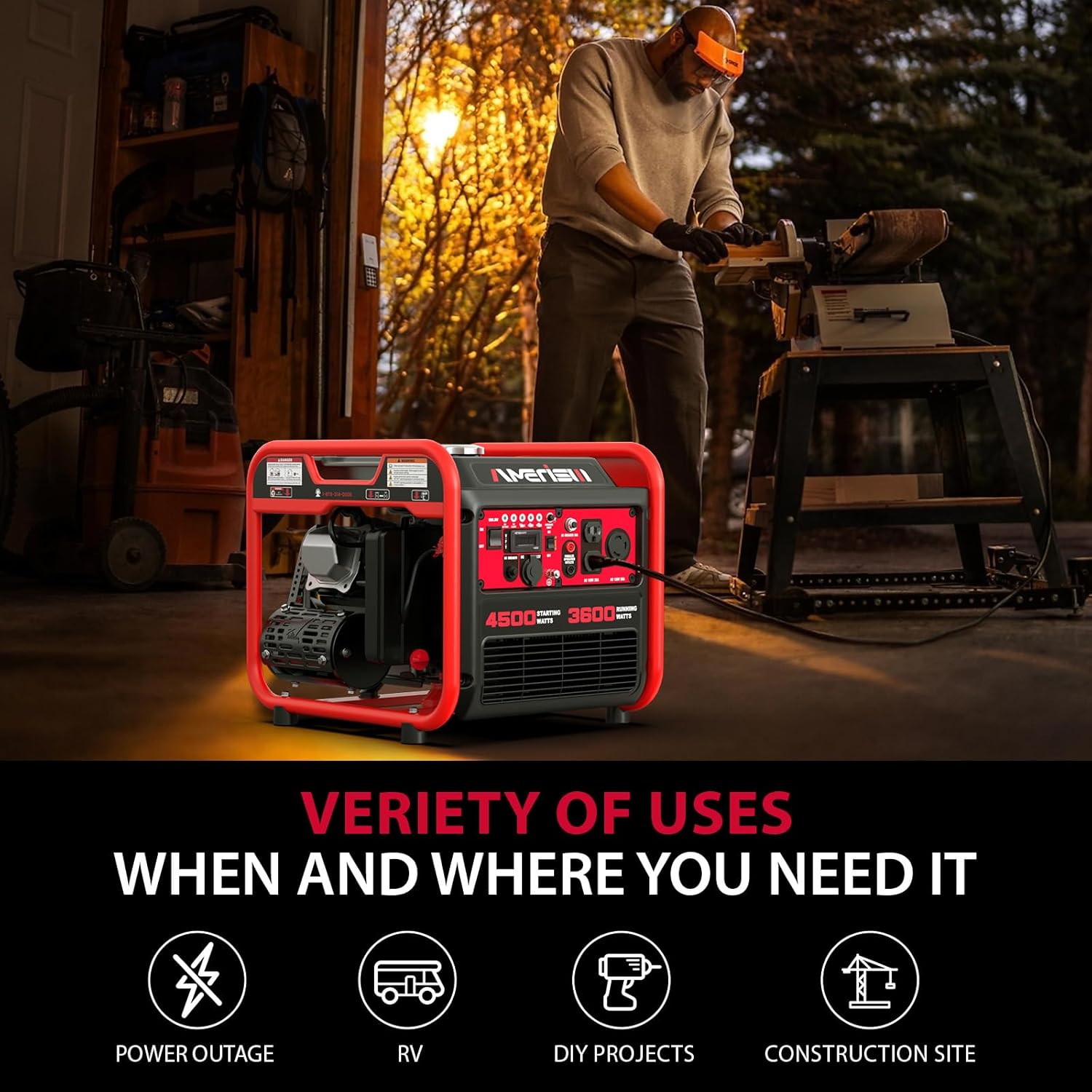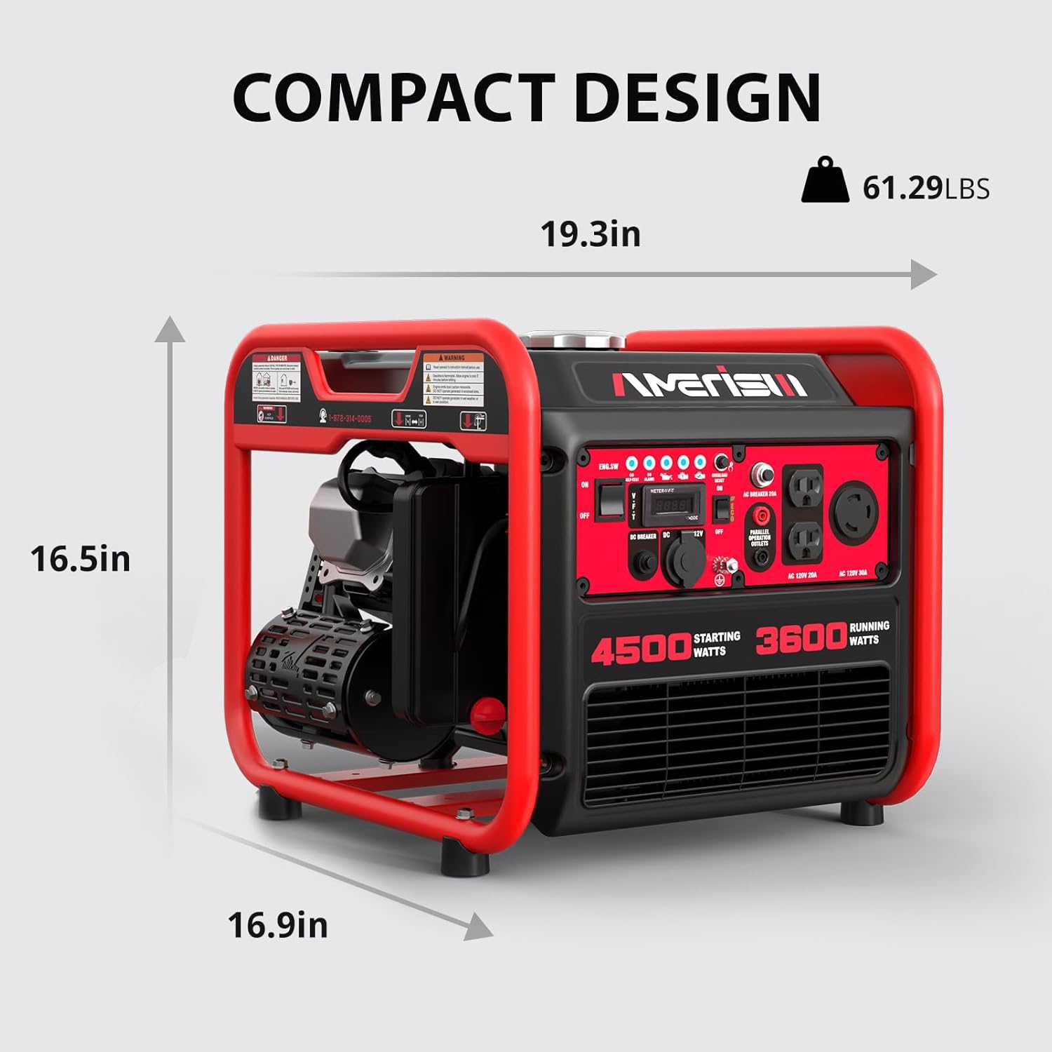 - Potente rendimiento: ofrece 4500 vatios de arranque y 3600 vatios de funcionamiento para alimentar los elementos esenciales del hogar como nevera, RV, luces