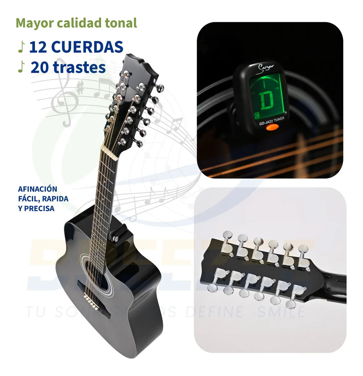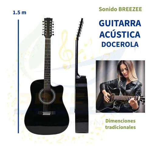 Descubre el sonido robusto y la belleza sin igual de la Guitarra Acústica BREEZEE Docerola de 12 cuerdas. Diseñada meticulosamente para músicos que buscan calidad y versatilidad en su instrumento, esta guitarra te acompañará en cada acorde de tu viaje musical.