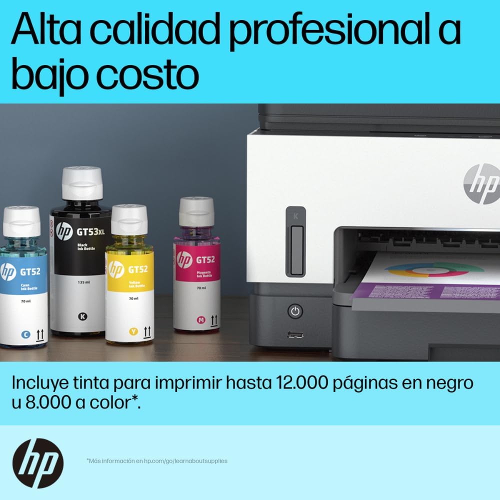 - ✔️ [CONSUMIBLES & RENDIMIENTO] Botella HP GT53XL, negro (aprox 6000 páginas); Botella HP GT53, negro (aprox 4000 páginas); Botella HP GT52, cian, magenta, amarillo (aprox 8000 páginas) BOTELLAS INCLUIDAS.