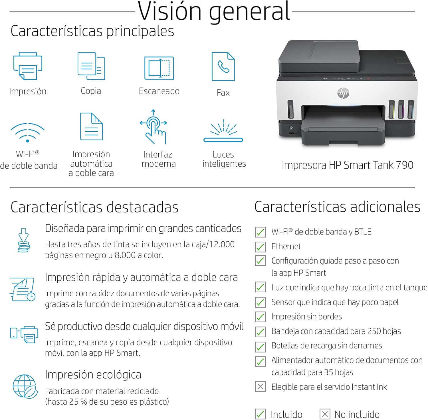 | Características especiales | Auto-Duplex, Escáner, Tanque de tinta recargable, Copiadora |