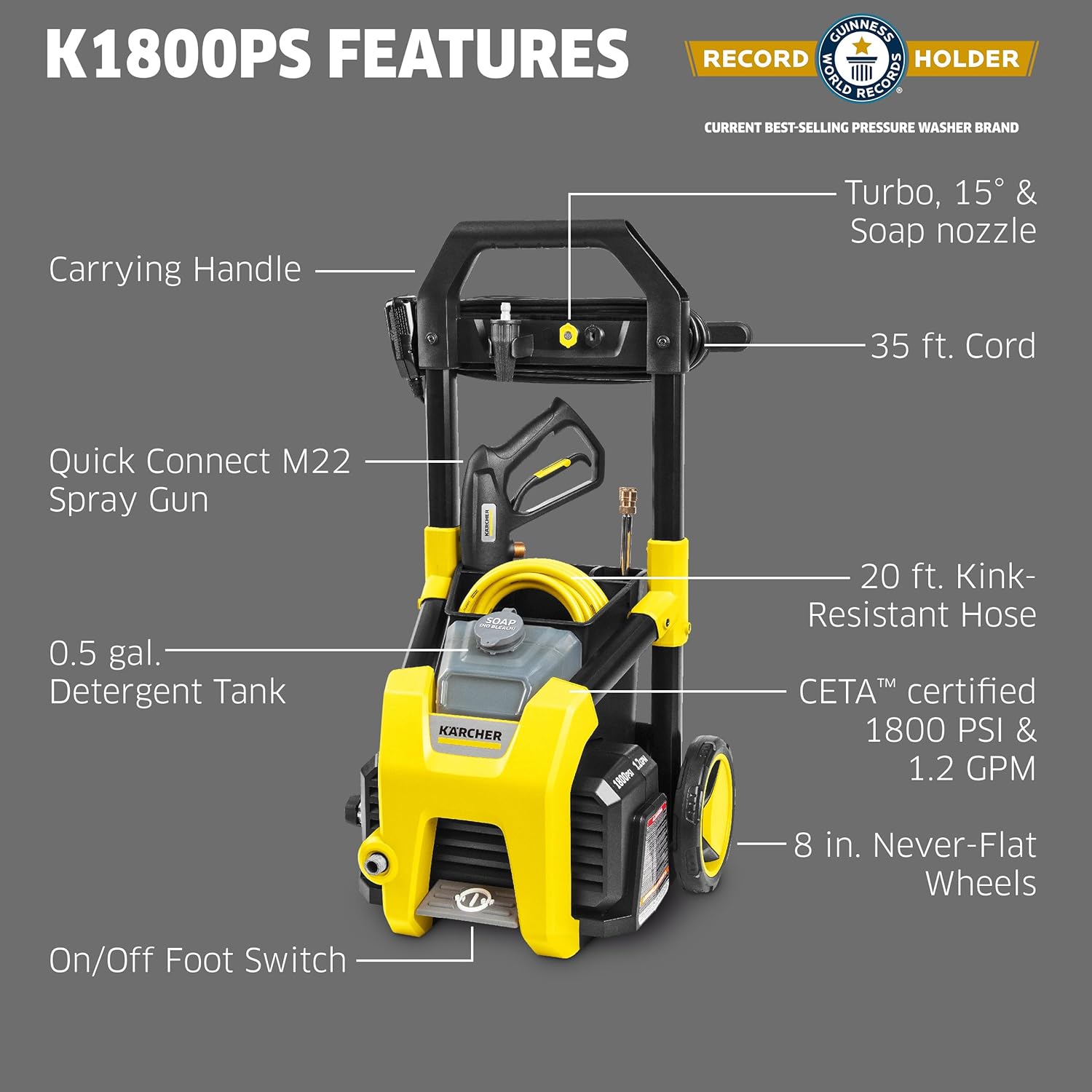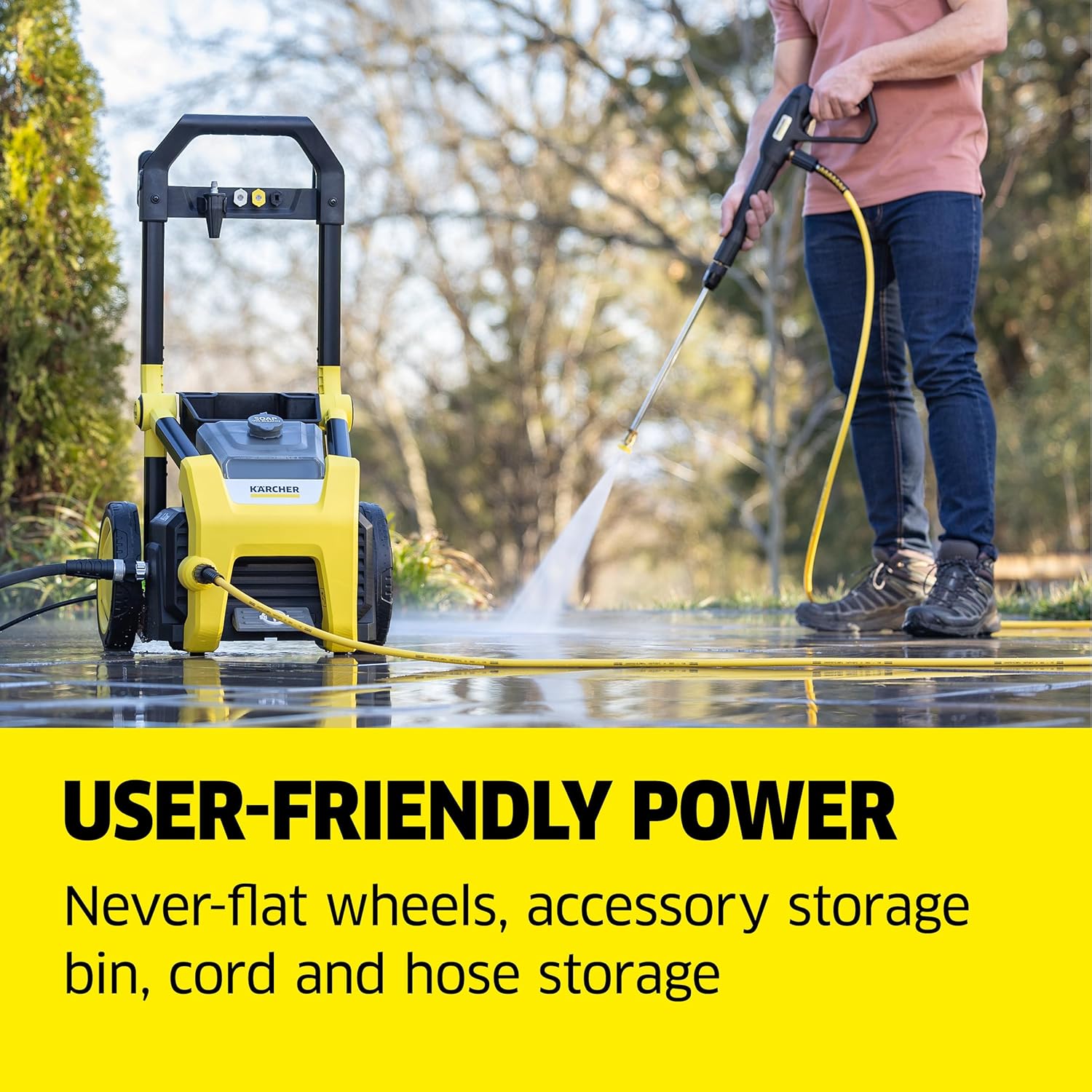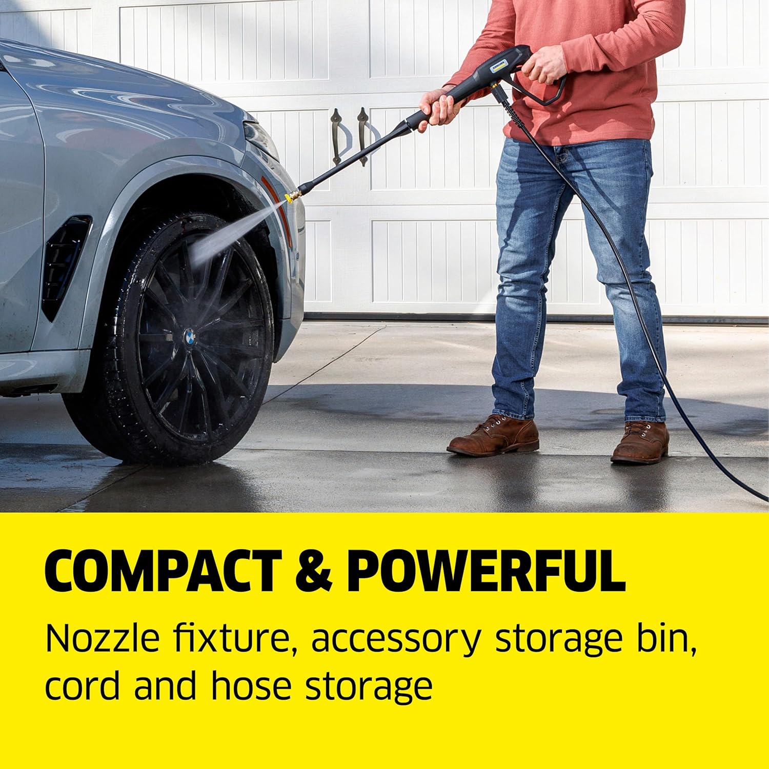 - Incluye tres boquillas: boquilla turbo para máxima potencia de limpieza en zonas difíciles, boquilla multiuso de 15° y boquilla de detergente