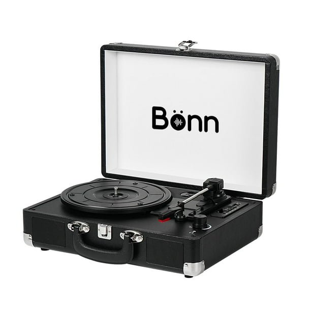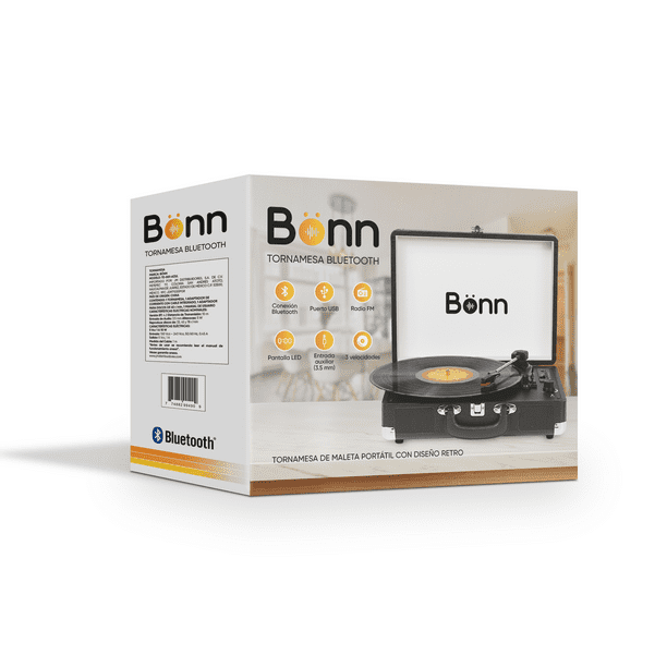 Como la mayoría de los otros tocadiscos, tiene un sistema accionado por correa de 3 velocidades con un interruptor de parada automática y un sistema integrado de alto rendimiento. Características: Potencia de salida: 2*5W Unidad de altavoz: 40*70 mm * 2 piezas Entrada USB y lector de tarjetas TF Emparejamiento Bluetooth para audio inalámbrico Radio FM Pantalla LED digital El tocadiscos reproduce discos de 33, 45 y 78 rpm Interruptor de encendido/apagado automático Sistema accionado por correa Aguja de rubí reemplazable en un cartucho estéreo de cerámica Tomas de salida RCA y entrada AUX Conector para auriculares de 3,5 mm Grabación de discos de vinilo en USB o tarjeta TF Teclas multimedia Diseño de maleta con superficie de cuero PU duradero Altavoces estéreo incorporados para un excelente sonido Color: negro. Alimentación CC: CC 5V1A Accesorios: adaptador de corriente DC 5V1A, adaptador de 45 RPM, manual Materiales: policarbonato agujas de meta y acero inoxidable.