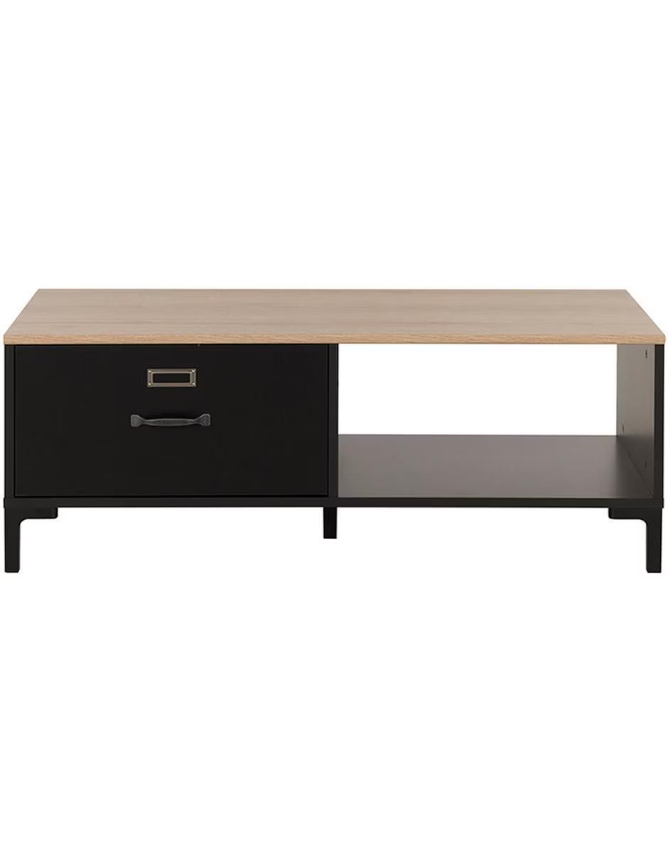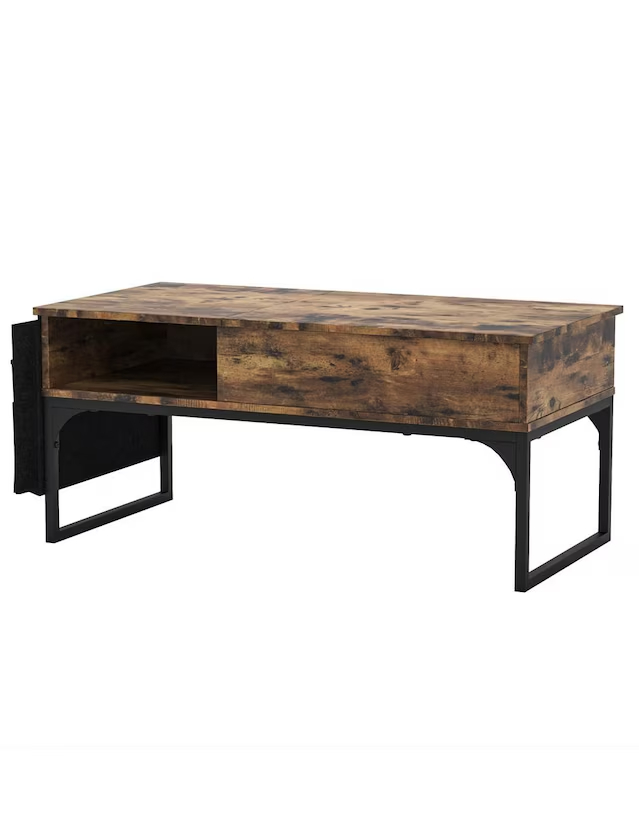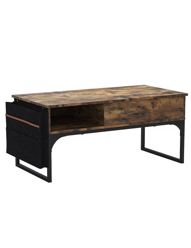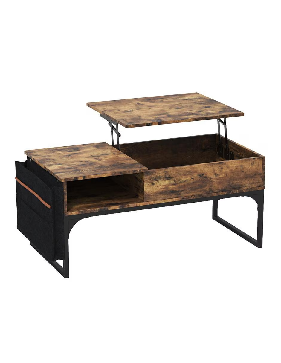 Superficie elevable multifunción: con un ligero gesto se alza hacia ti, convirtiéndose al instante en escritorio, bandeja de snack o rincón de trabajo sin perder un ápice de estilo. Compartimento oculto xl: oculta mantas, mandos y portátiles en un espacio generoso que mantiene tu sala impecable y sofisticada de forma discreta. Diseño rustic chic: la calidez de la madera envejecida contrastada con acero negro ofrece una presencia refinada que realza cualquier ambiente contemporáneo. Organizador lateral inteligente: el bolsillo de fieltro con ribete delicado guarda revistas y tablets, demostrando que hasta el último detalle importa.