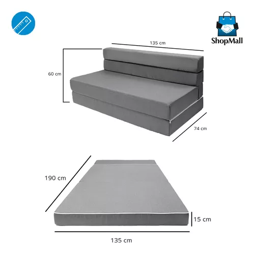 • SOFÁ CAMA PLEGABLE. Este mueble es ideal para optimizar el espacio en tu sala de estar o estudio, ya que se transforma en una cama matrimonial de 135 x 190 cm al desplegarse. Se pliega con facilidad para su almacenamiento.
